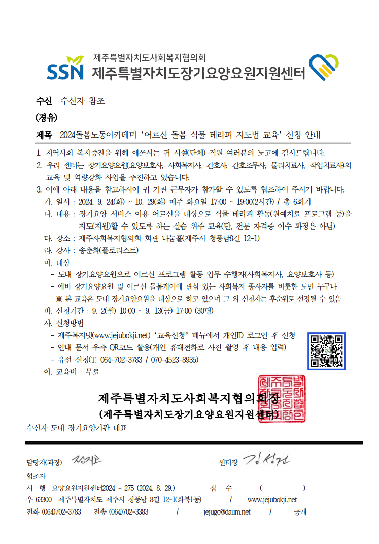 [2024돌봄노동아카데미] 어르신 돌봄 식물 테라피 지도법 교육 신청
