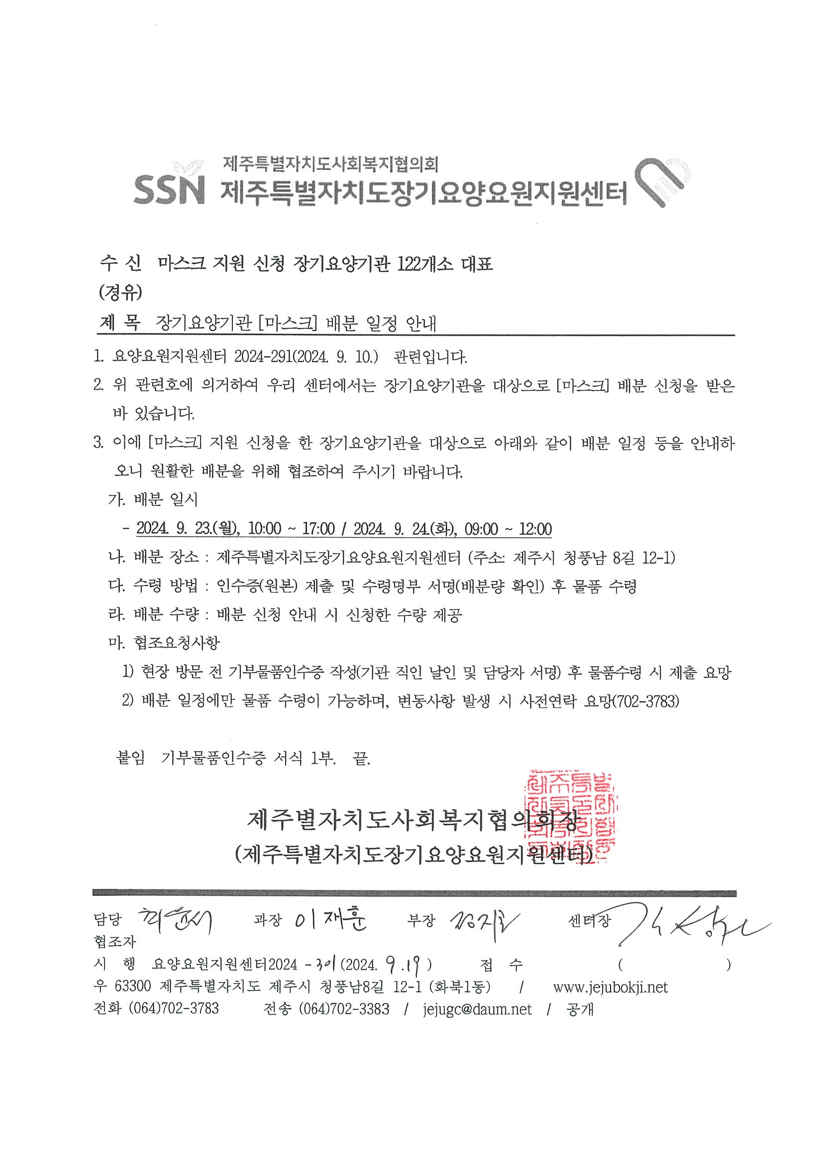 장기요양기관 [마스크] 배분 일정 안내