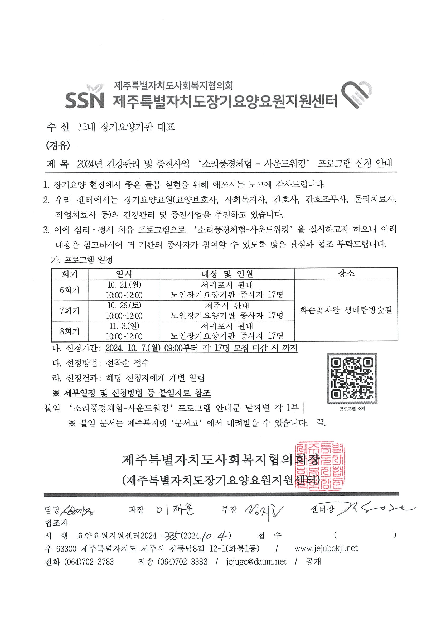 2024년 건강관리 및 증진사업 '소리풍경체험-사운드워킹' 프로그램 신청 안내