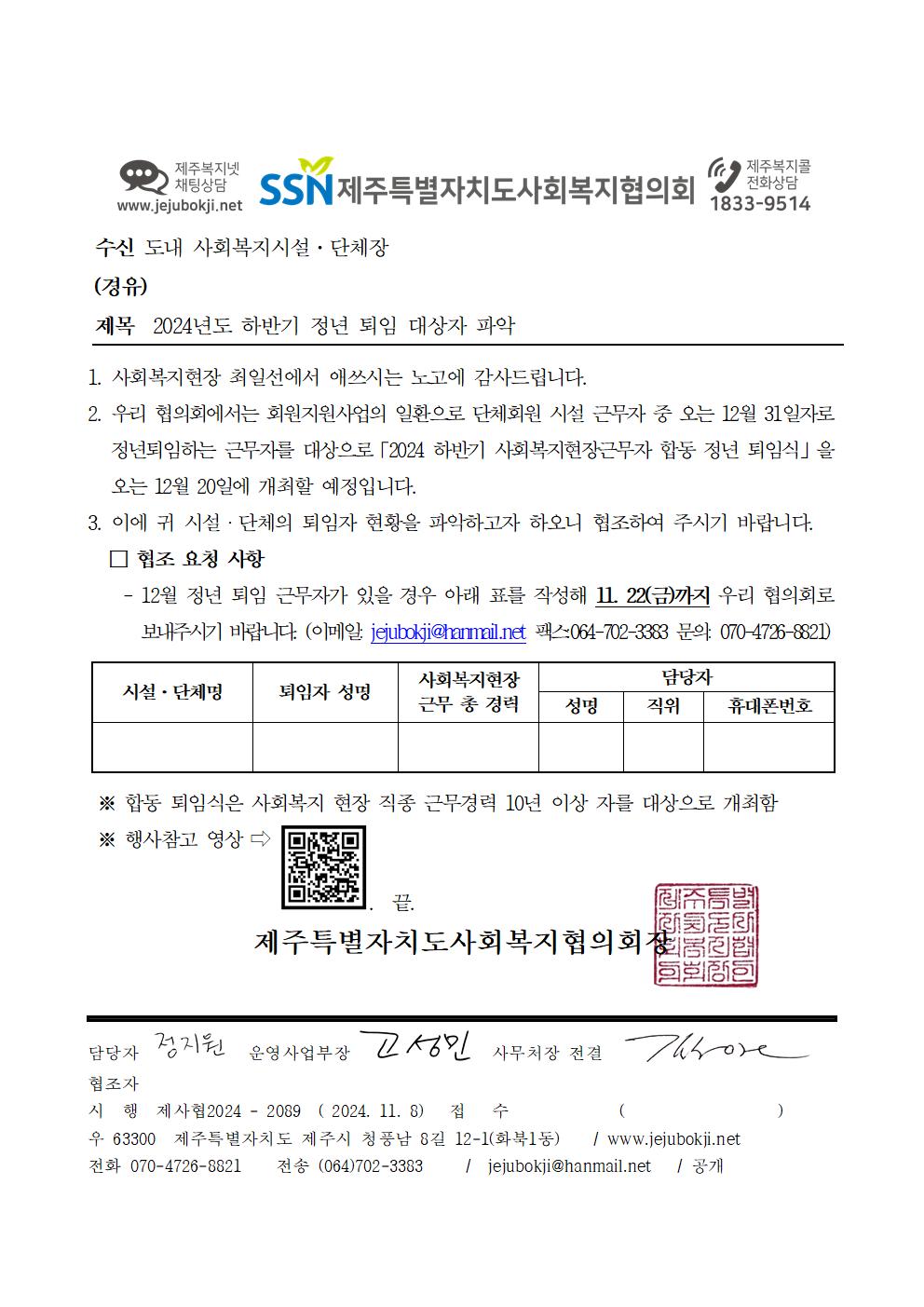2024년도 하반기 정년 퇴임 대상자 파악