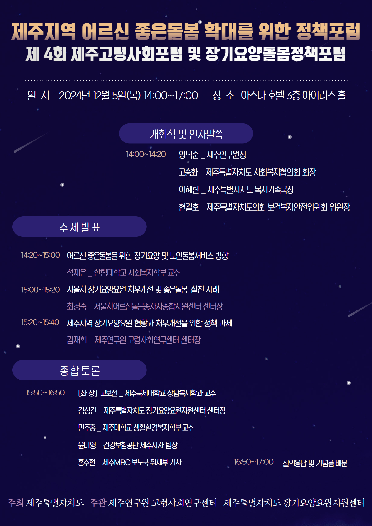 제주지역 어르신 좋은 돌봄 확대를 위한 정책 포럼 개최 알림 및 참석 요청