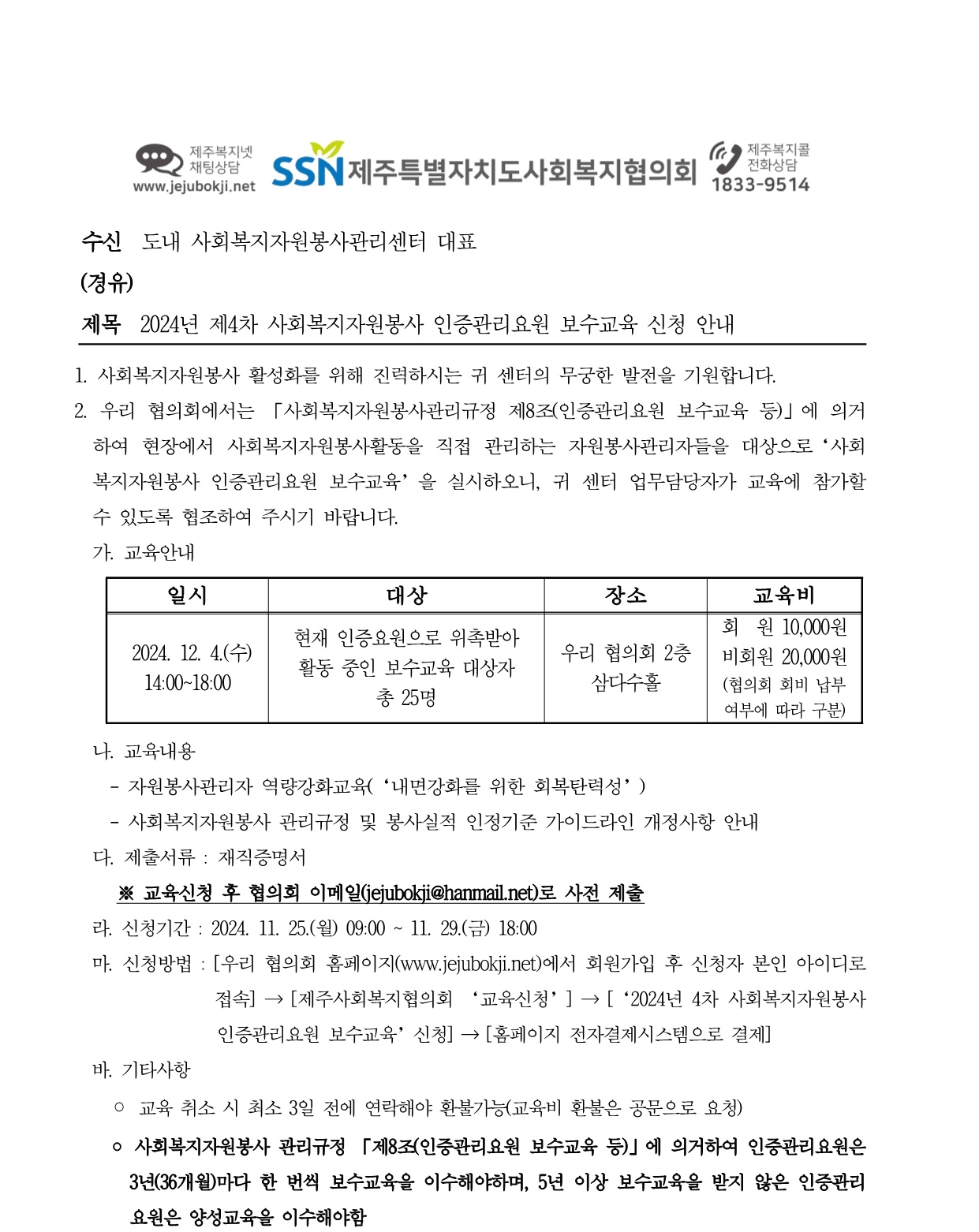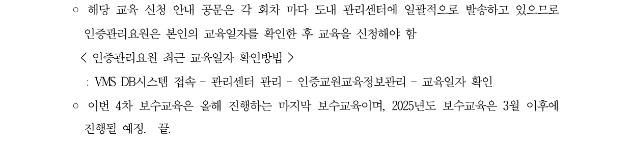 2024년 제4차 인증관리요원 보수교육 신청 안내