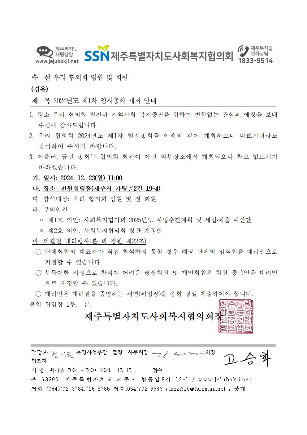 2024년도 제1차 임시총회 개최 안내