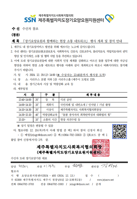 장기요양요원과 함께하는 현장 소통 네트워크(장기근속자 시상식) 참석 안내