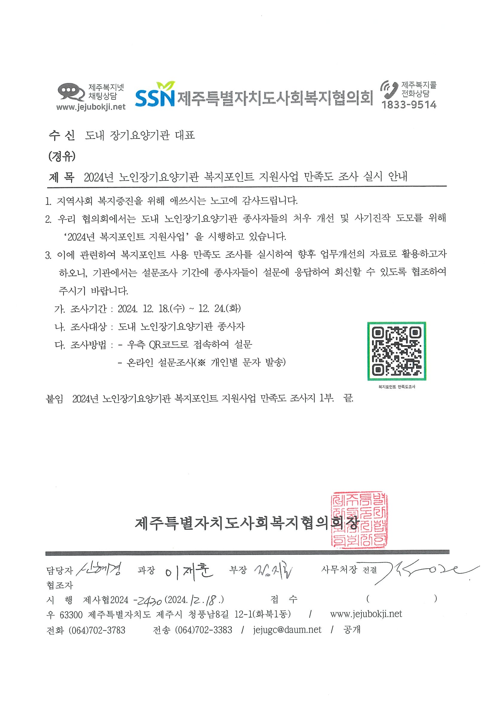 2024년 노인장기요양기관 복지포인트 지원사업 만족도 조사 실시 안내