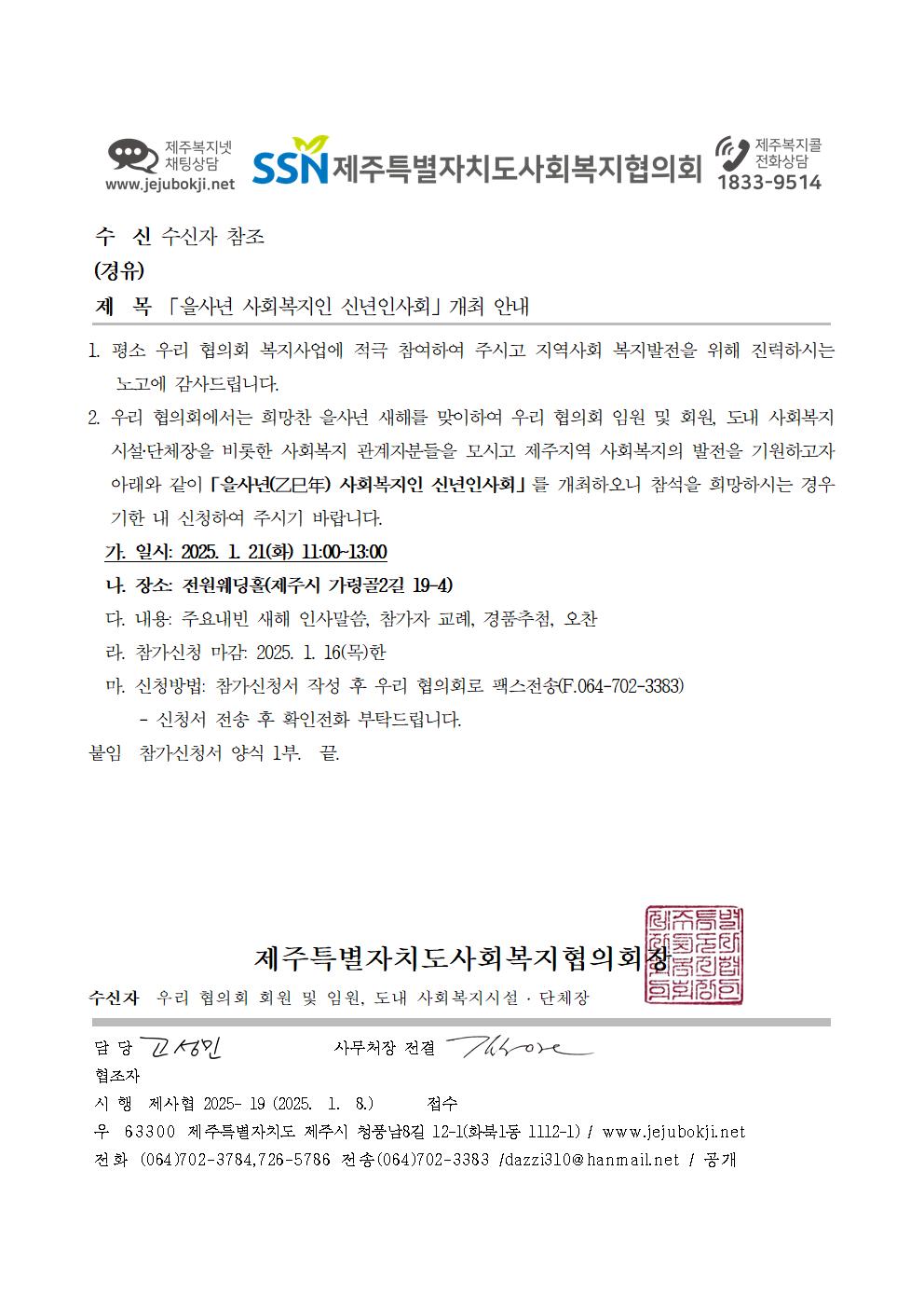 「을사년 사회복지인 신년인사회」 개최 안내