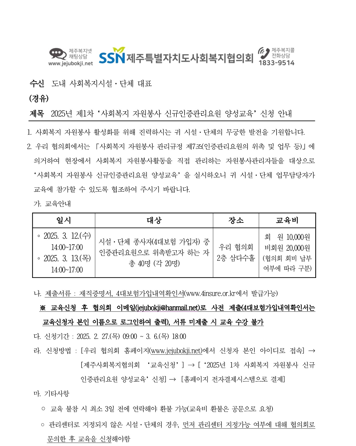 2025년 제1차 신규인증관리요원 양성교육 신청 안내
