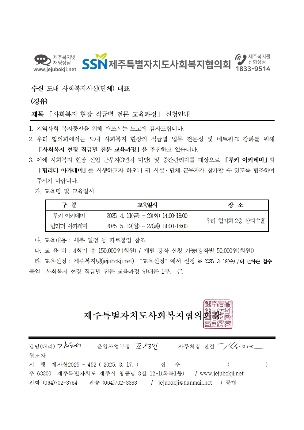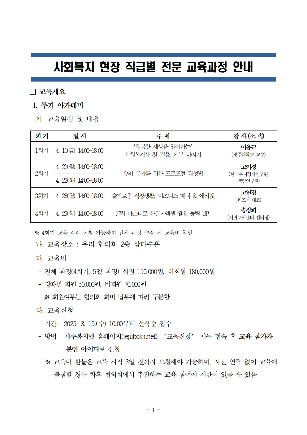「사회복지 현장 직급별 전문 교육과정」 신청안내
