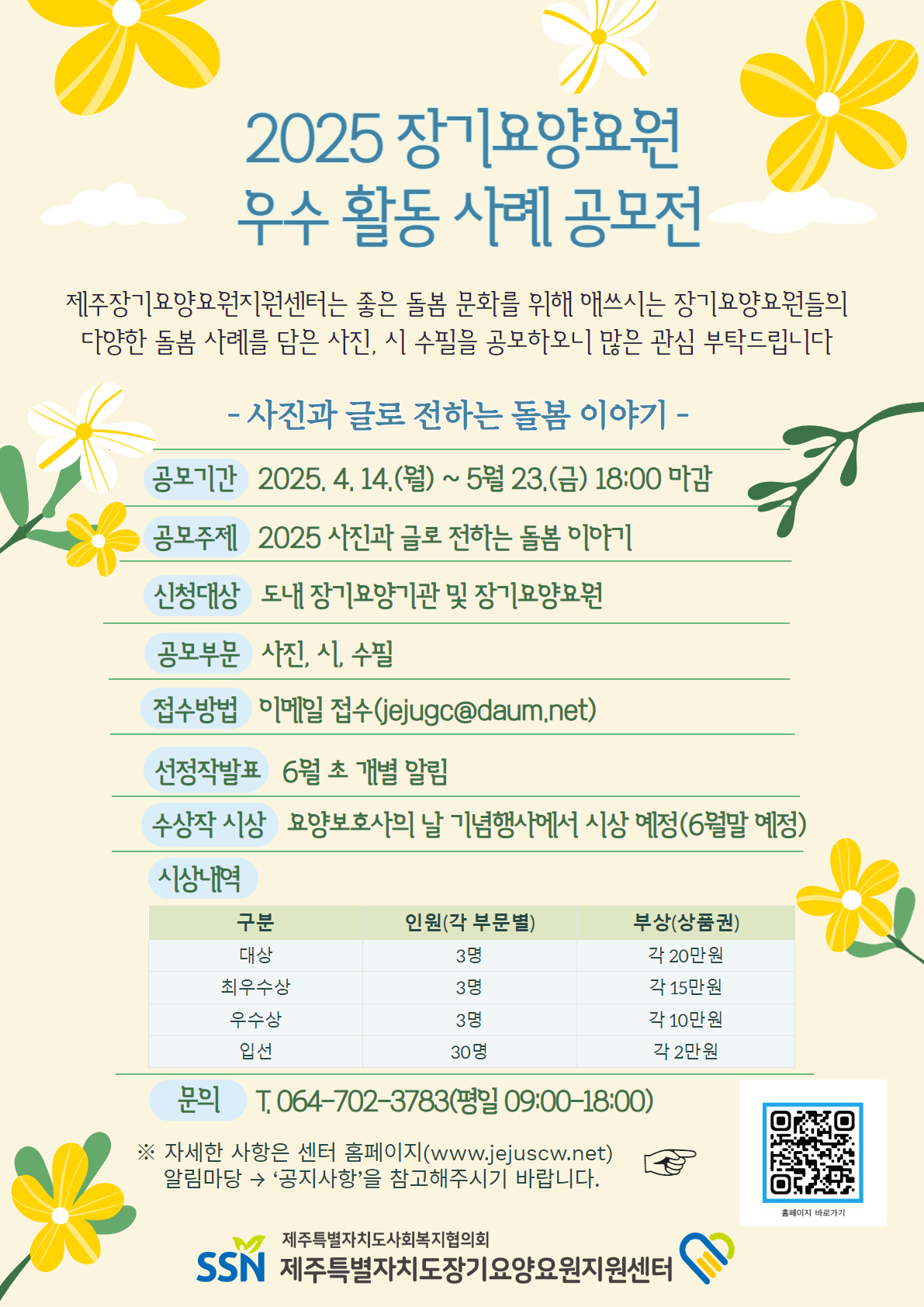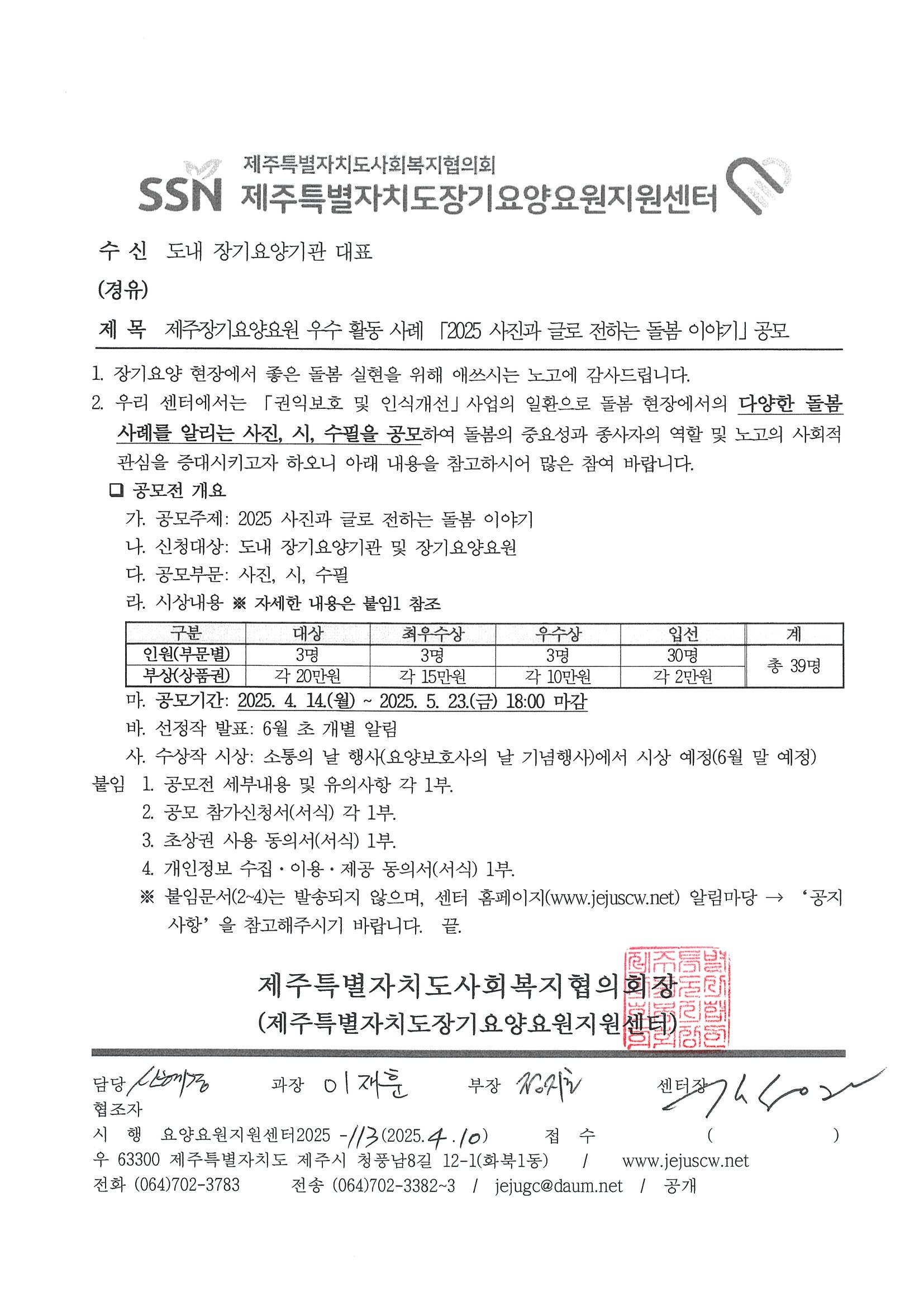 제주장기요양요원 우수 활동 사례 「2025 사진과 글로 전하는 돌봄 이야기」공모