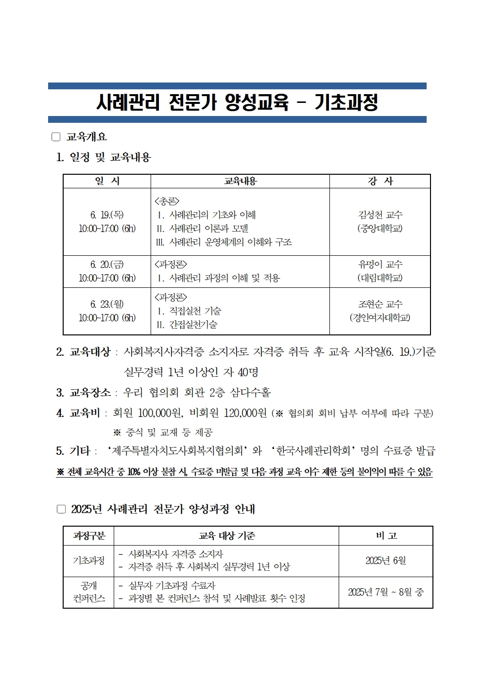 '사례관리 전문가 양성교육 - 기초과정' 신청안내