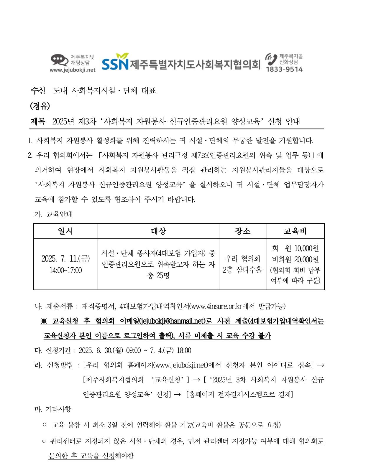 2025년 제3차 신규인증관리요원 양성교육 신청 안내