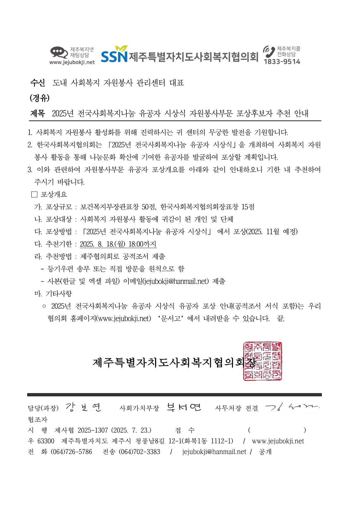 2025년 전국사회복지나눔 유공자 시상식 자원봉사부문 포상후보자 추천 안내