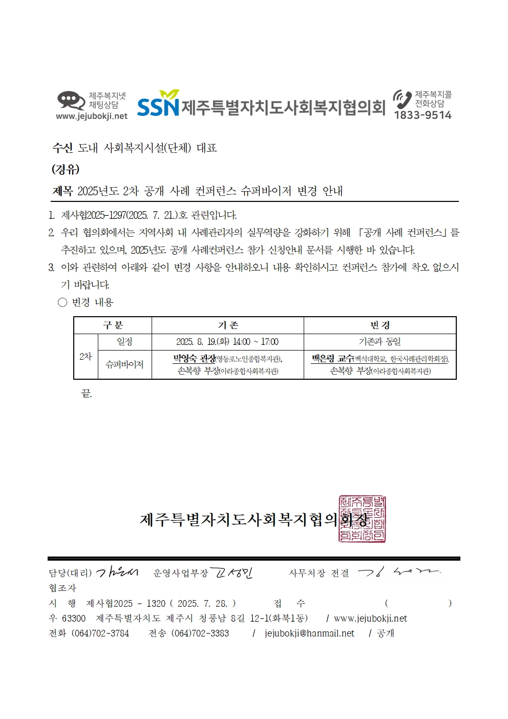2025년도 2차 공개 사례 컨퍼런스 슈퍼바이저 변경 안내