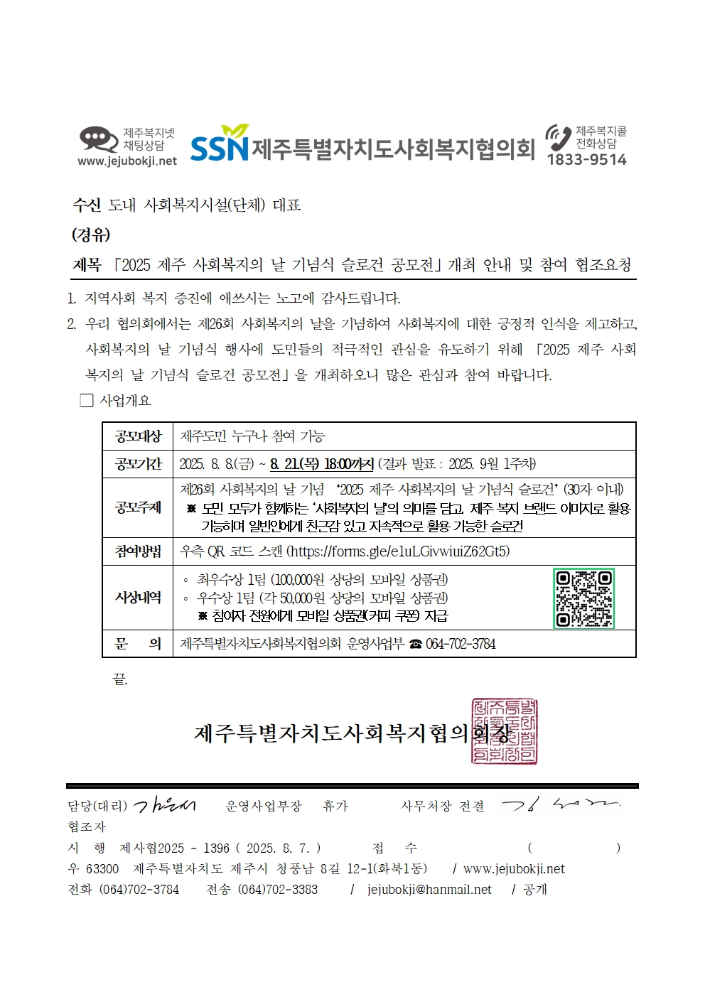 「2025 제주 사회복지의 날 기념식 슬로건 공모전」 개최 안내 및 참여 협조요청