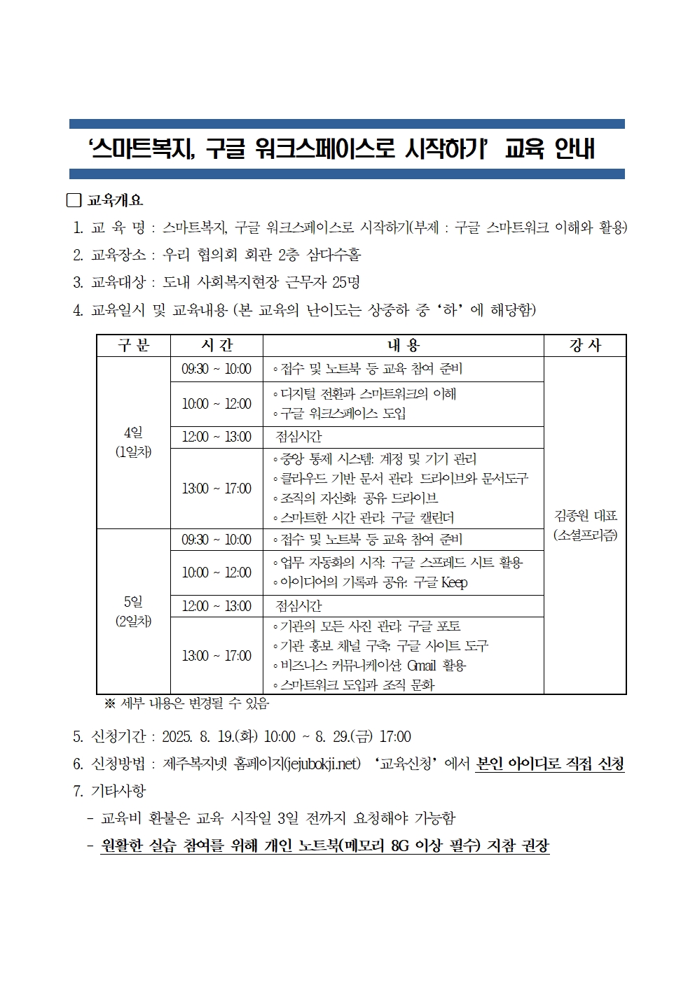 「스마트복지, 구글 워크스페이스로 시작하기」 교육 참가 신청 안내