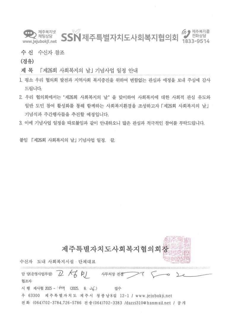 「제26회 사회복지의 날」기념사업 일정 안내