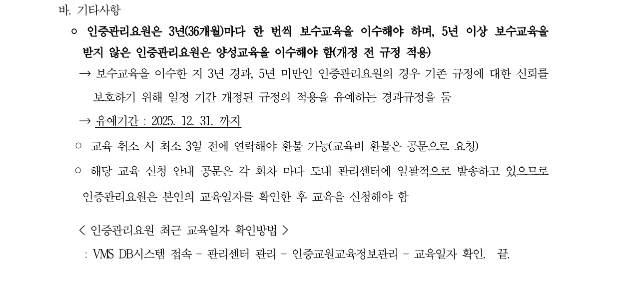 2025년 제3차 인증관리요원 보수교육 신청 안내