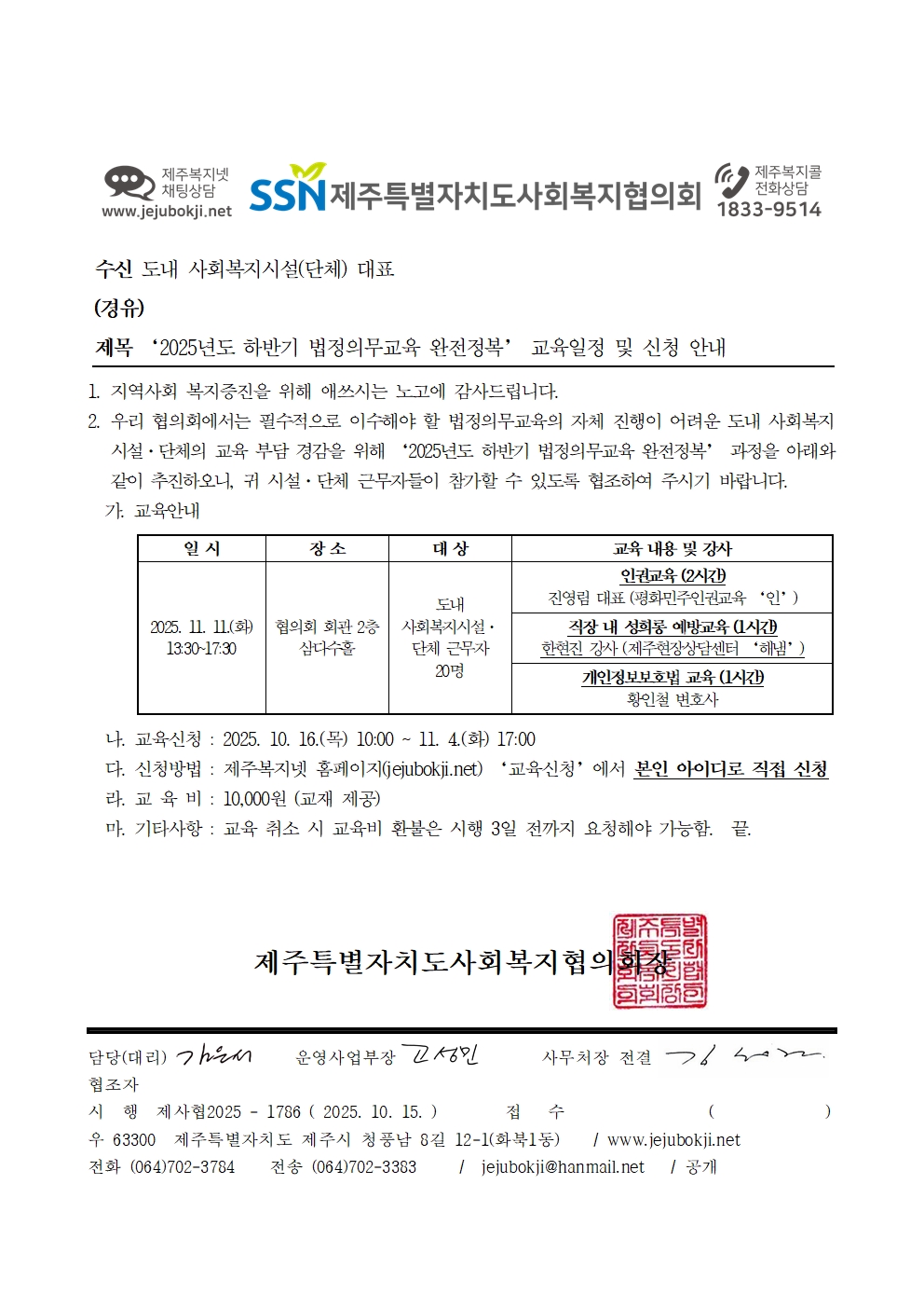 2025년도 하반기 법정의무교육 완전정복 교육일정 및 신청 안내