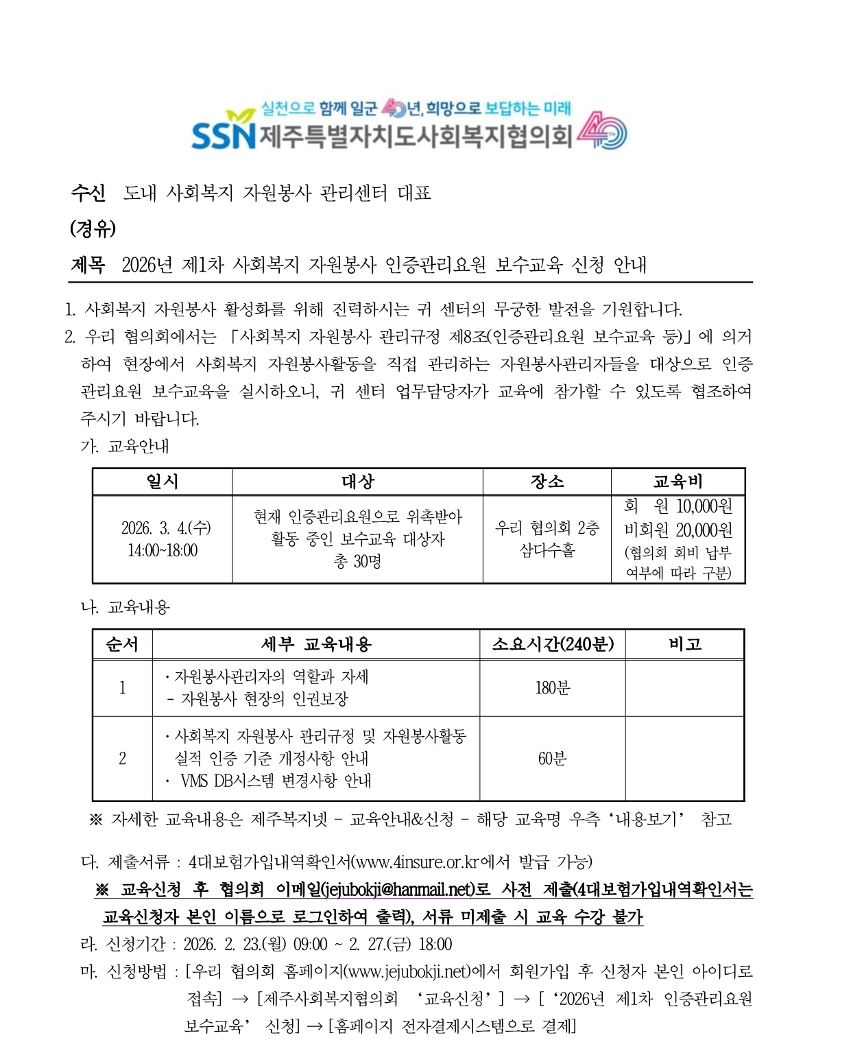 2026년 제1차 인증관리요원 보수교육 신청 안내