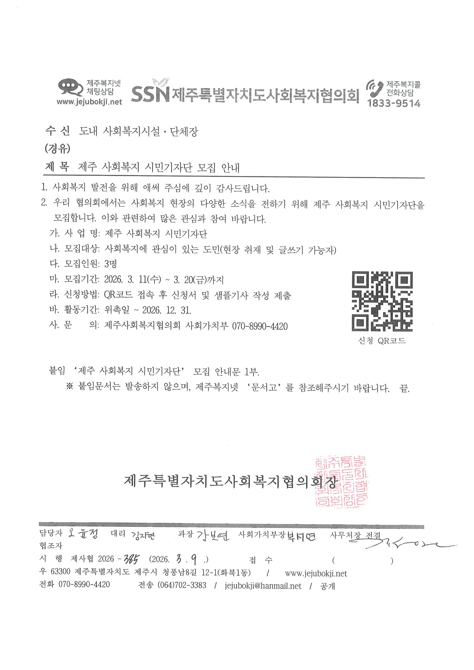 우리 협의회에서는 제주 사회복지 시민기자단을 모집하고 있습니다.