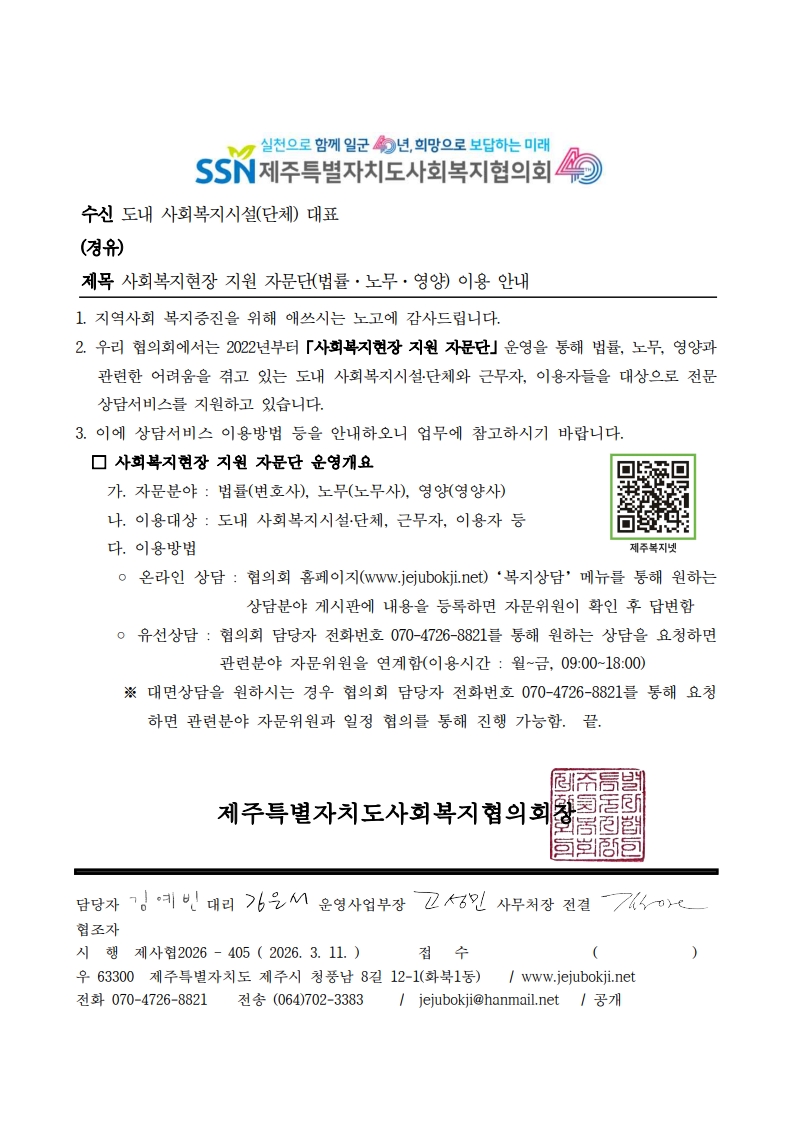 사회복지현장 지원 자문단(법률·노무·영양) 이용 안내