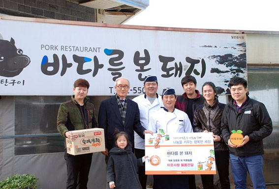 제주시 한경면 반포리에서 운영하는 연탄구이 고기집 '바다를 본 돼지'(사장 임정호)는 지난 9일 제주특별자치도사회복지협의회(회장 고치환)에서 운영하는 광역푸드뱅크에 500만원 상당의 라면 250박스를 기탁했다.