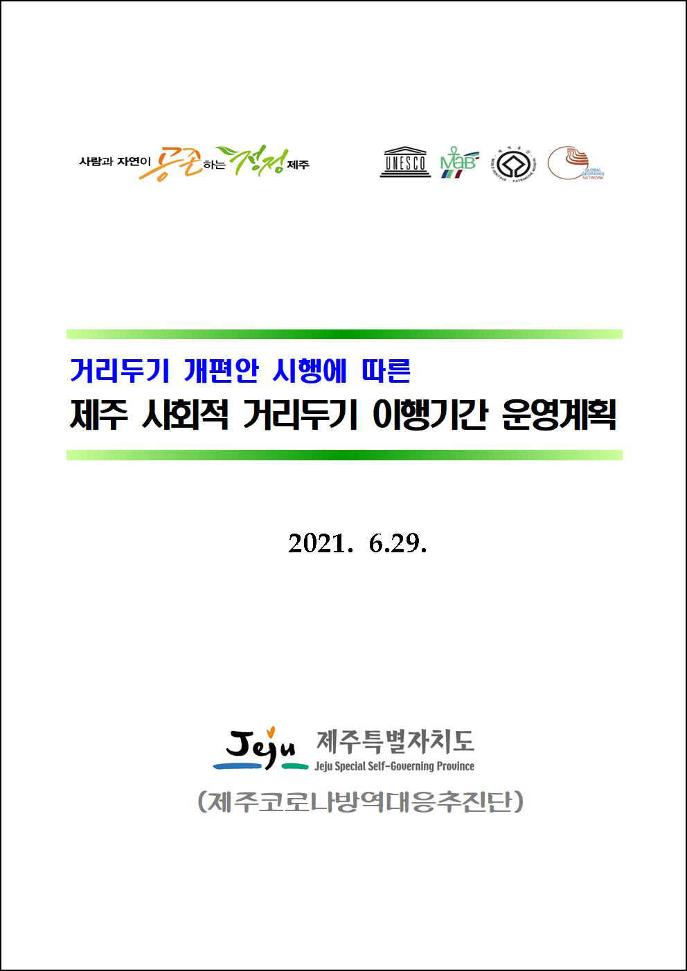 이에 따른 우리 도의 제주 사회적 거리두기 이행기간 운영계획을 알려드리오니,