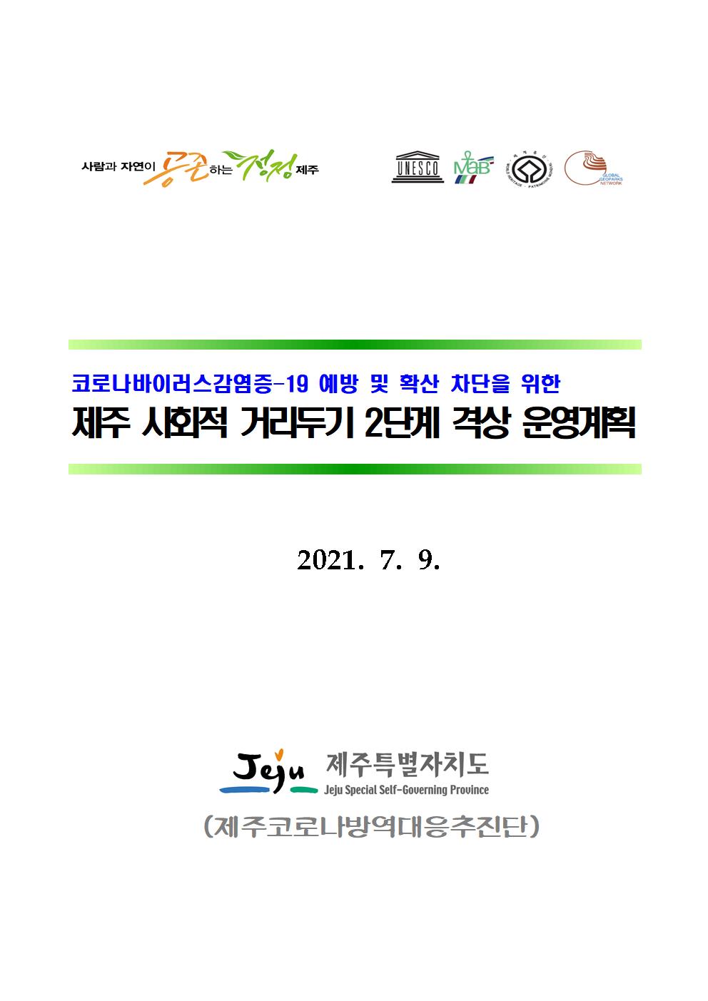 이에 따른 우리 도의 제주 사회적 거리두기 2단계 운영계획을 알려드리오니,