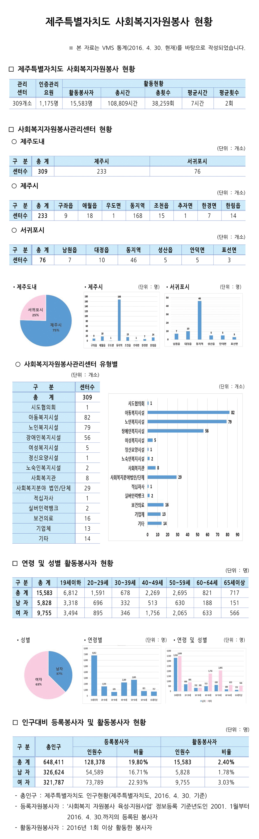 제주특별자치도 자원봉사현황(2016. 4. 30. 기준)