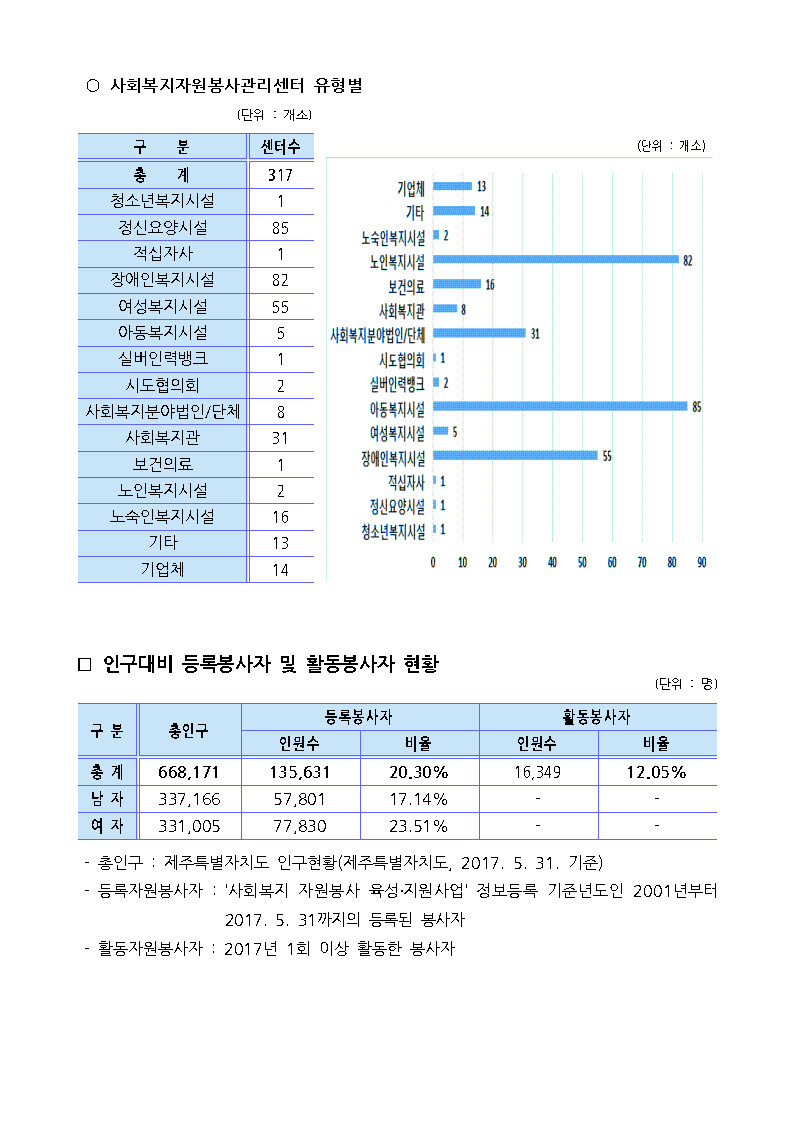 제주특별자치도 자원봉사현황(2017. 5. 31. 기준)