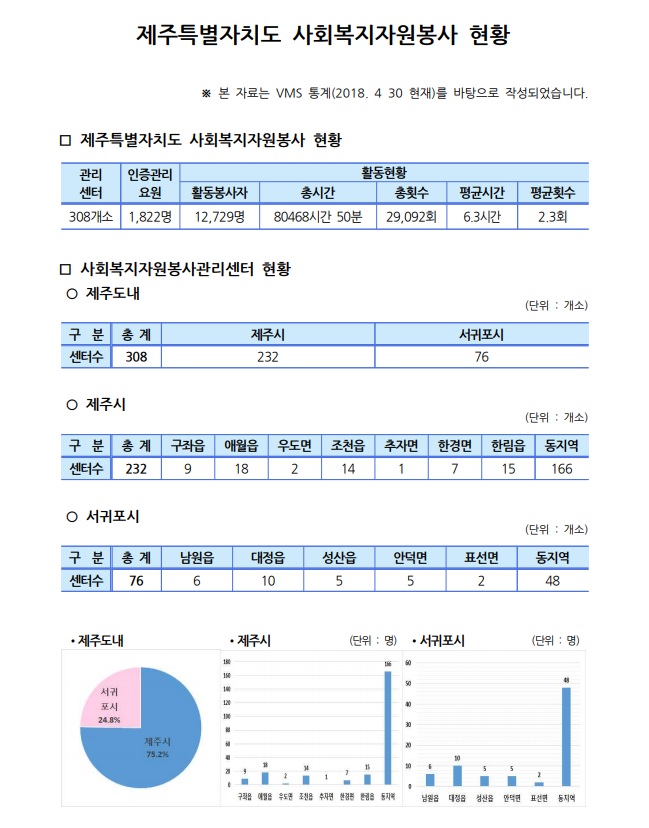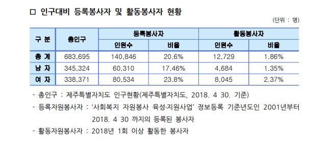 제주특별자치도 자원봉사현황(2018. 4. 30. 기준)