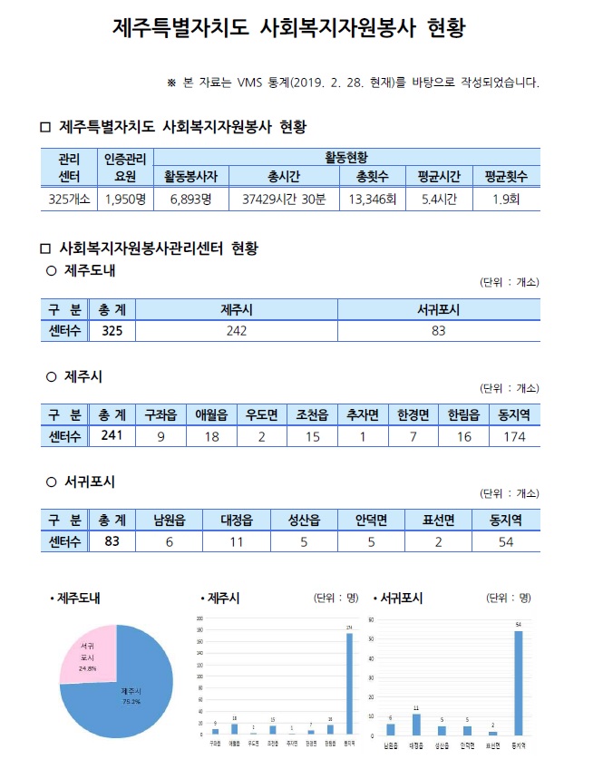 제주특별자치도 자원봉사현황(2019. 2. 28기준)
