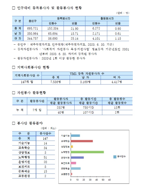 제주특별자치도 자원봉사현황(2020. 6. 30 기준)