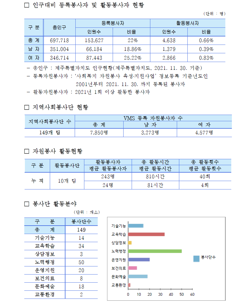 제주특별자치도 자원봉사현황 (2021. 11. 30 기준)