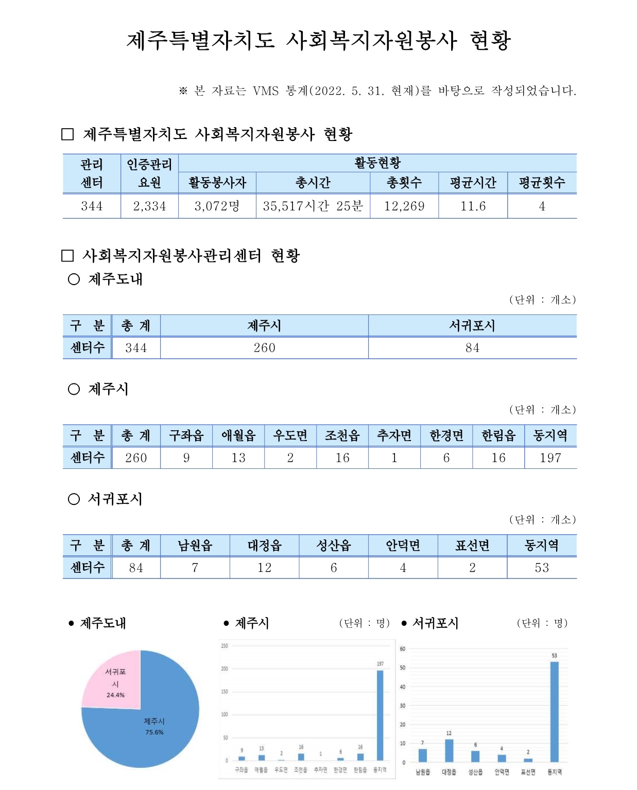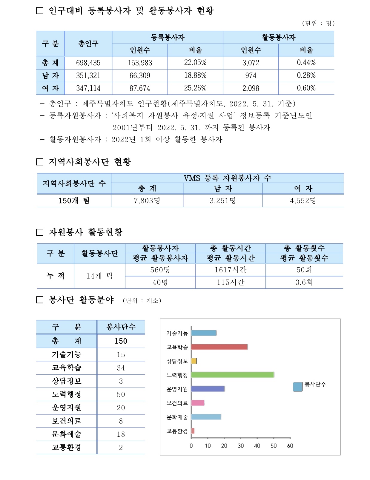 제주특별자치도 자원봉사현황 (2022. 5. 31 기준)