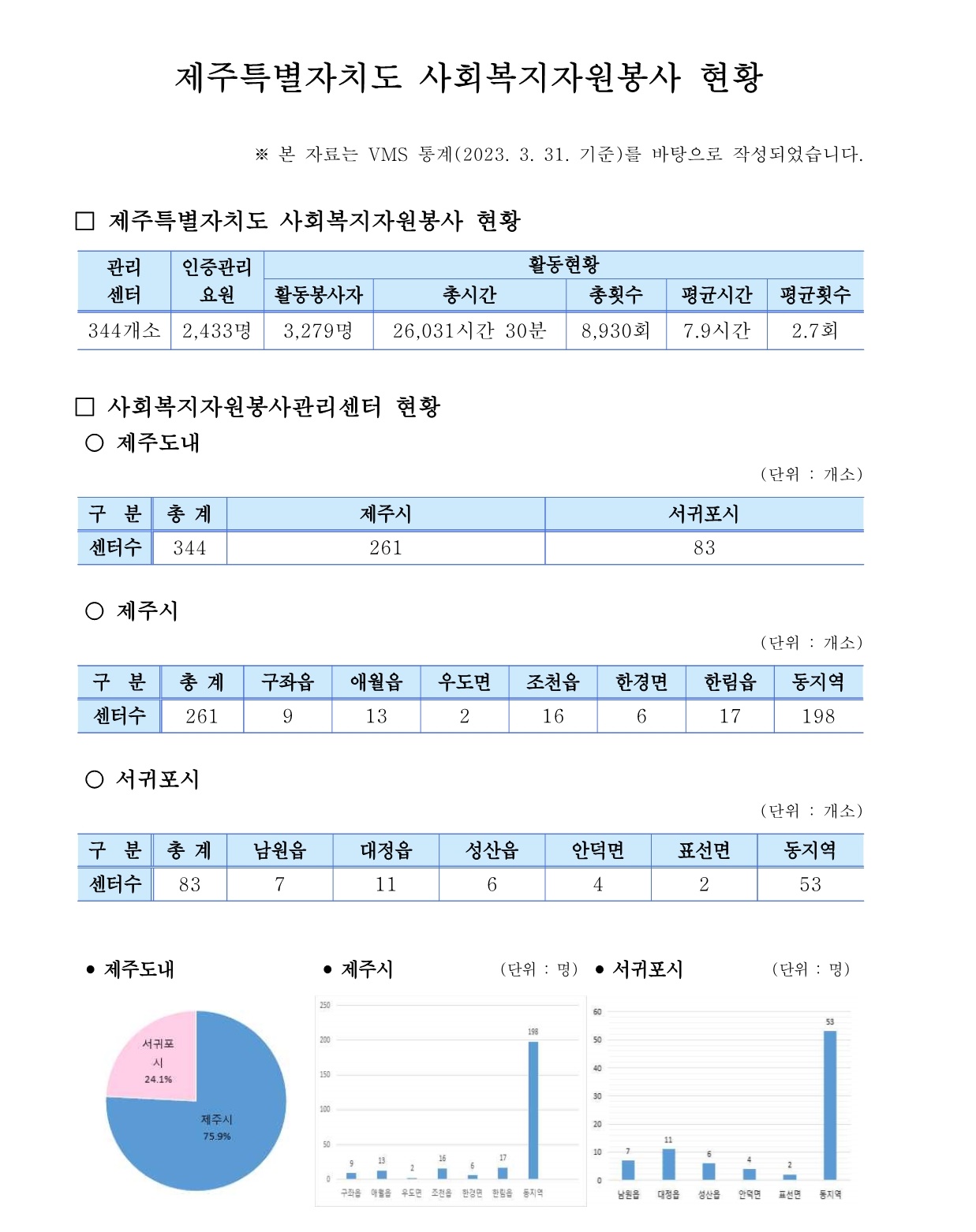 제주특별자치도 자원봉사현황 (2023. 3. 31. 기준)