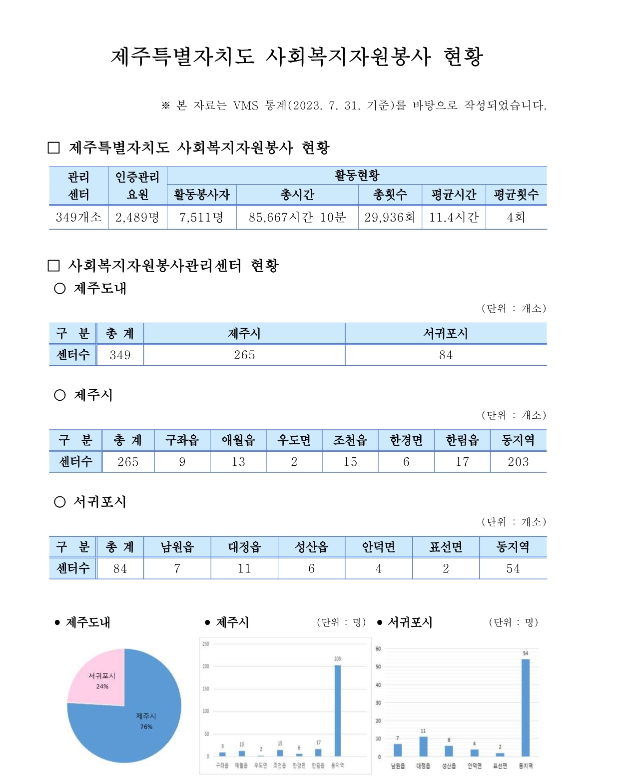 제주특별자치도 자원봉사현황 (2023. 7. 31. 기준)