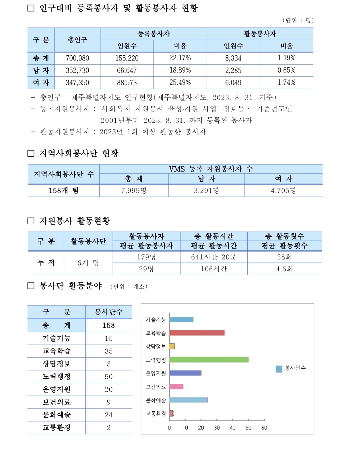 제주특별자치도 자원봉사현황 (2023. 8. 31. 기준)