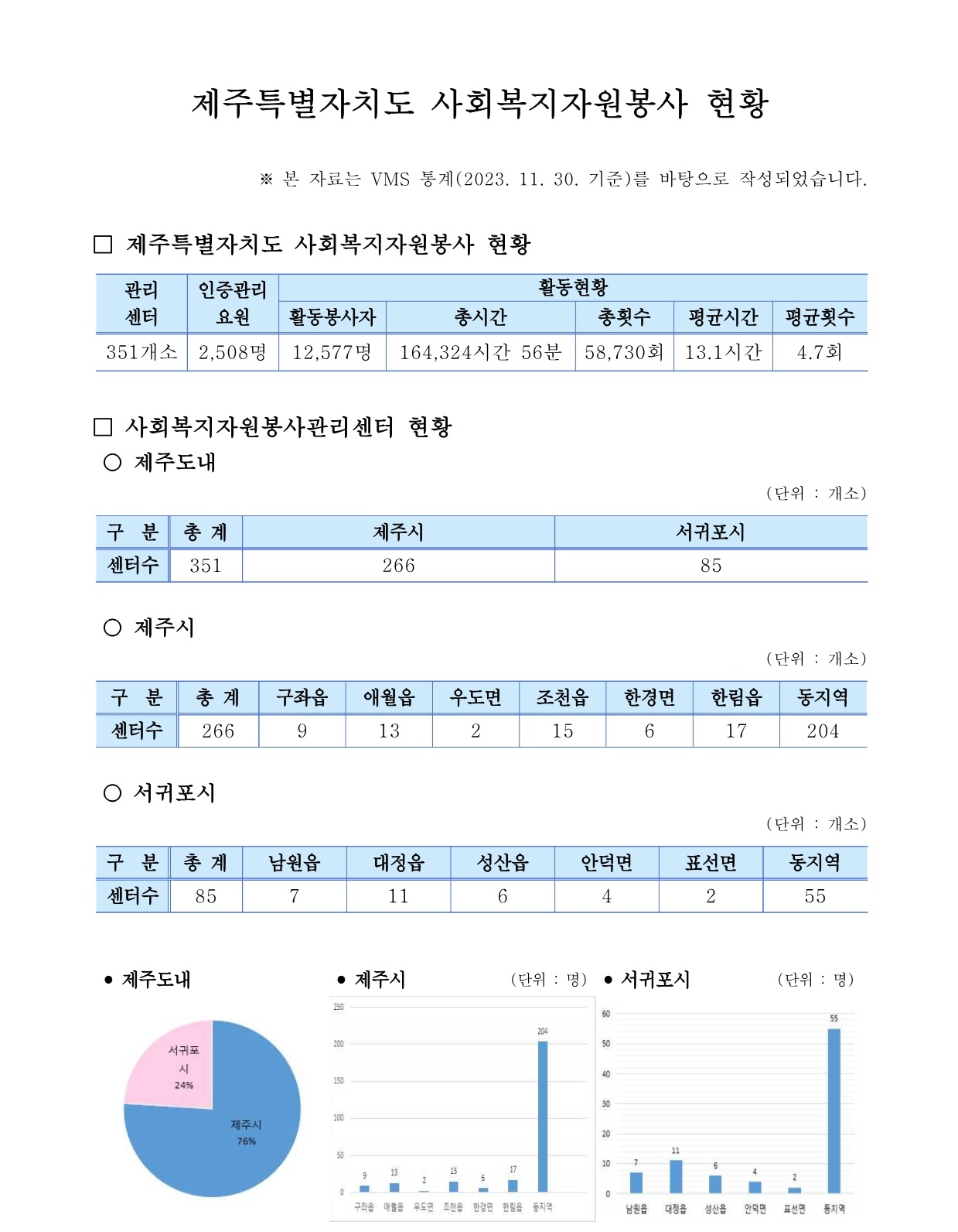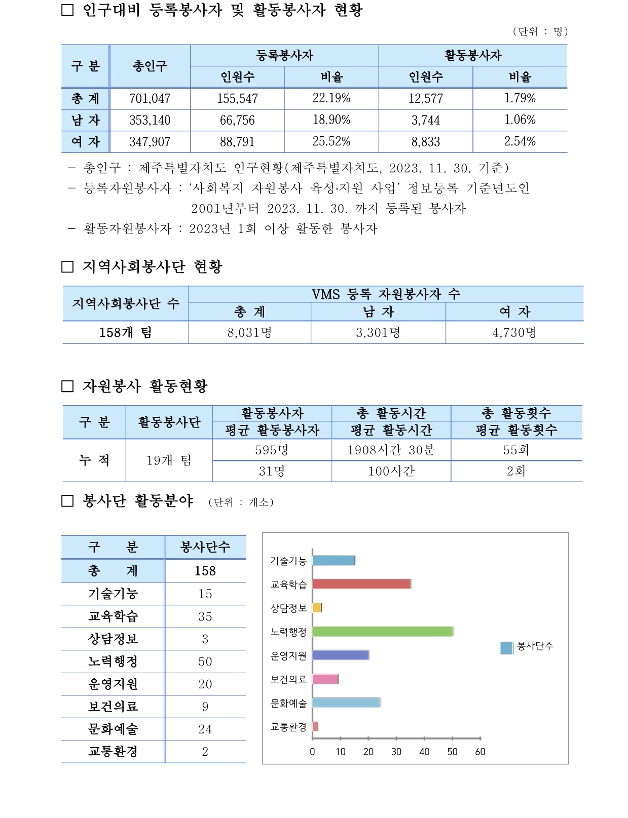 제주특별자치도 자원봉사현황 (2023. 11. 30. 기준)