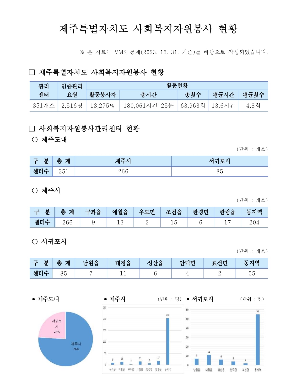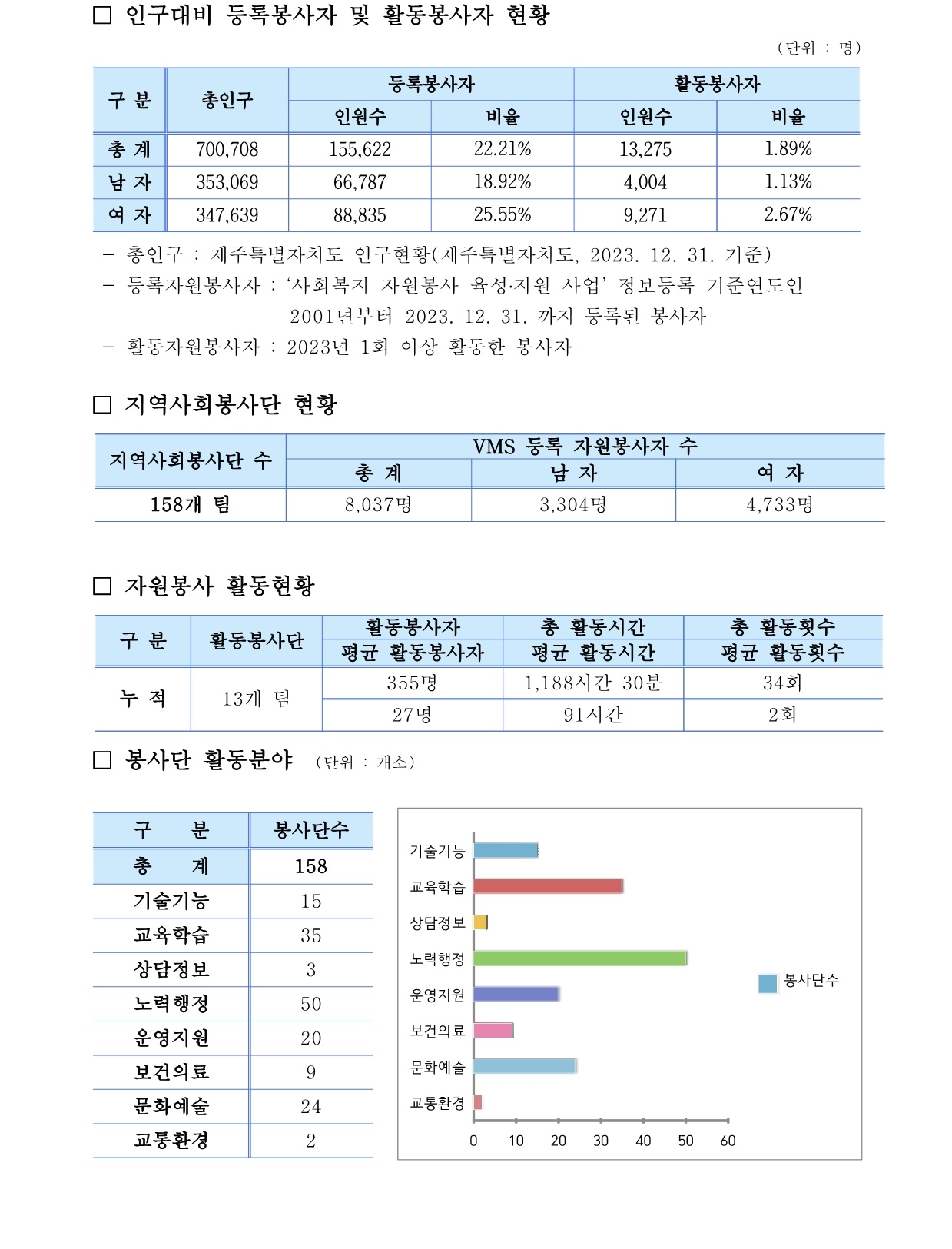 제주특별자치도 자원봉사현황 ( 2023. 12. 31. 기준)