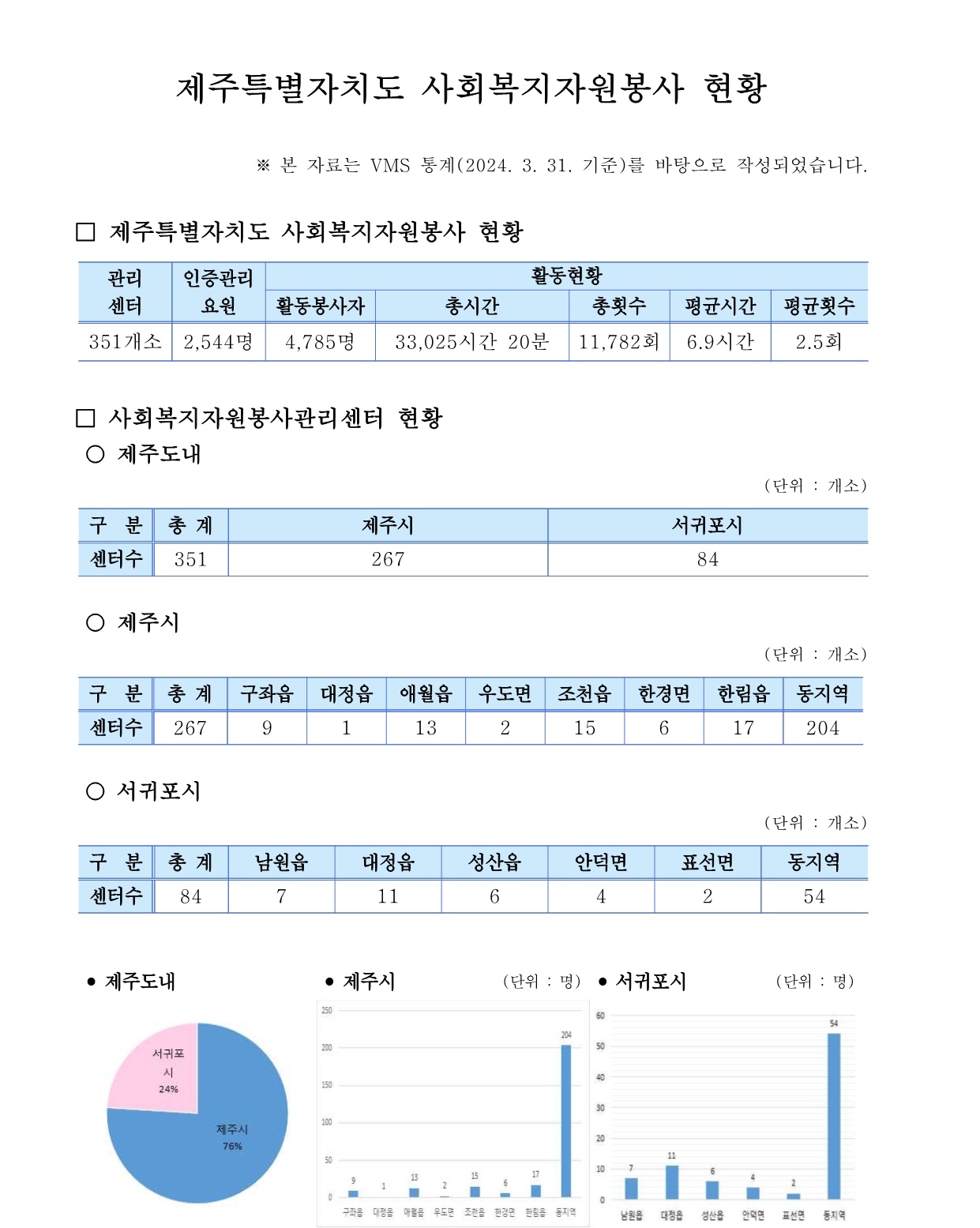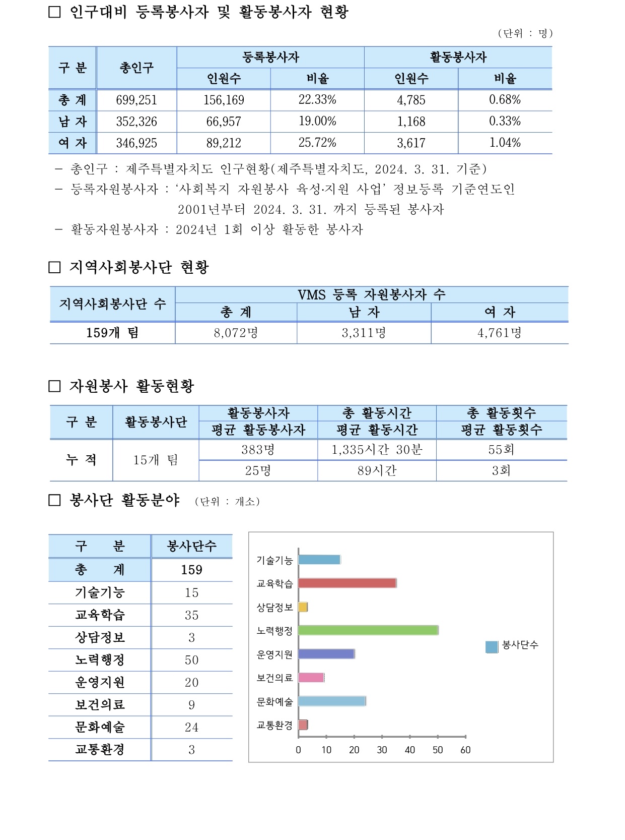 제주특별자치도 자원봉사현황 (2024. 3. 31. 기준)