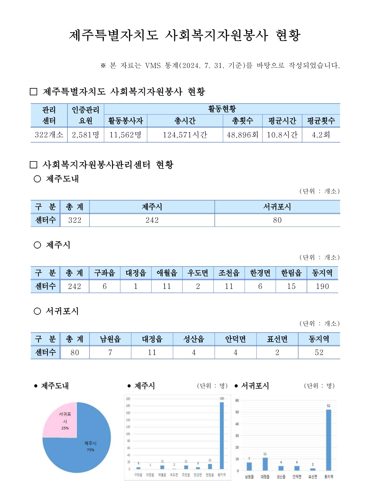 제주특별자치도 자원봉사 현황 (2024. 7. 31. 기준)