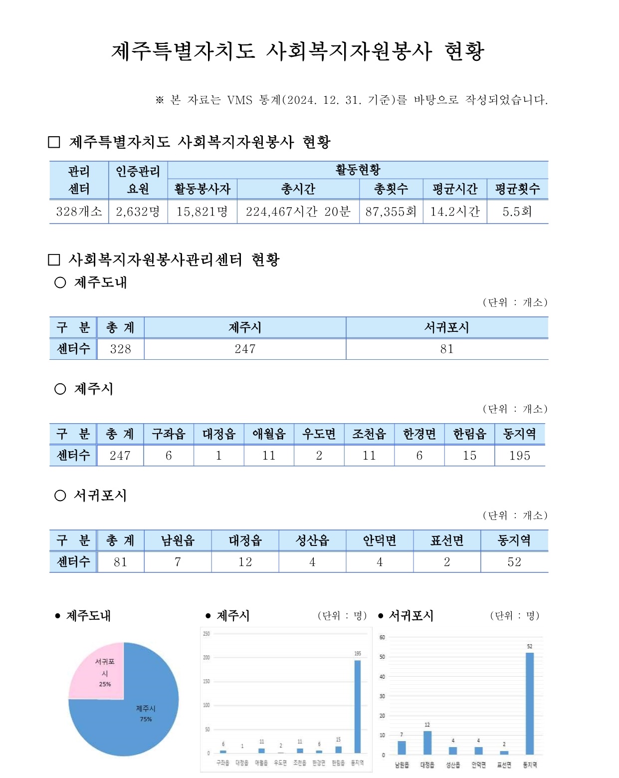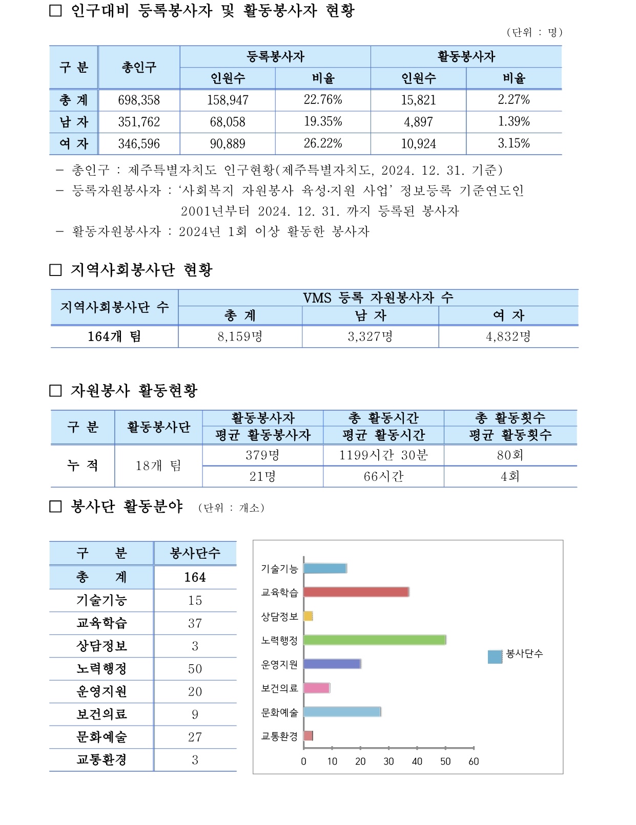 제주특별자치도 자원봉사 현황 (2024. 12. 31. 기준)
