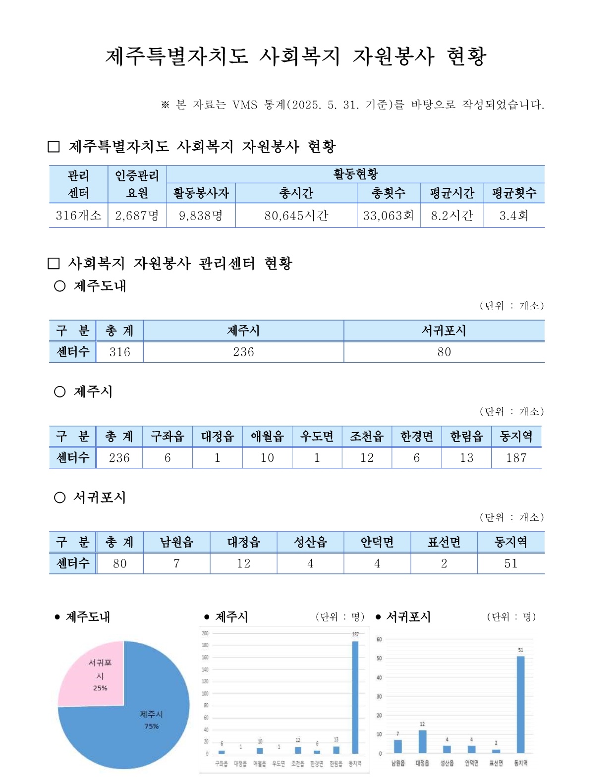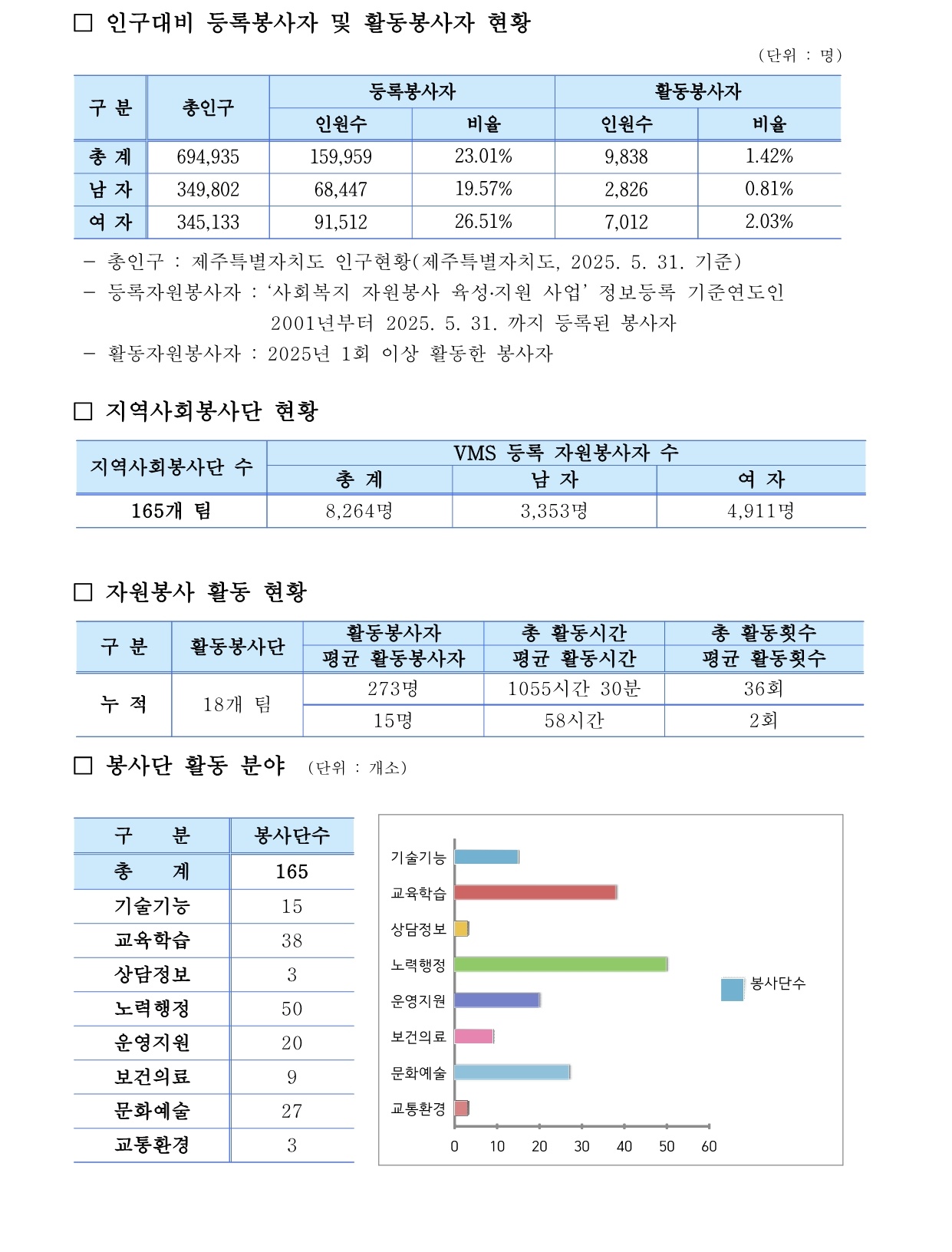 제주특별자치도 자원봉사 현황 (2025. 5. 31. 기준)