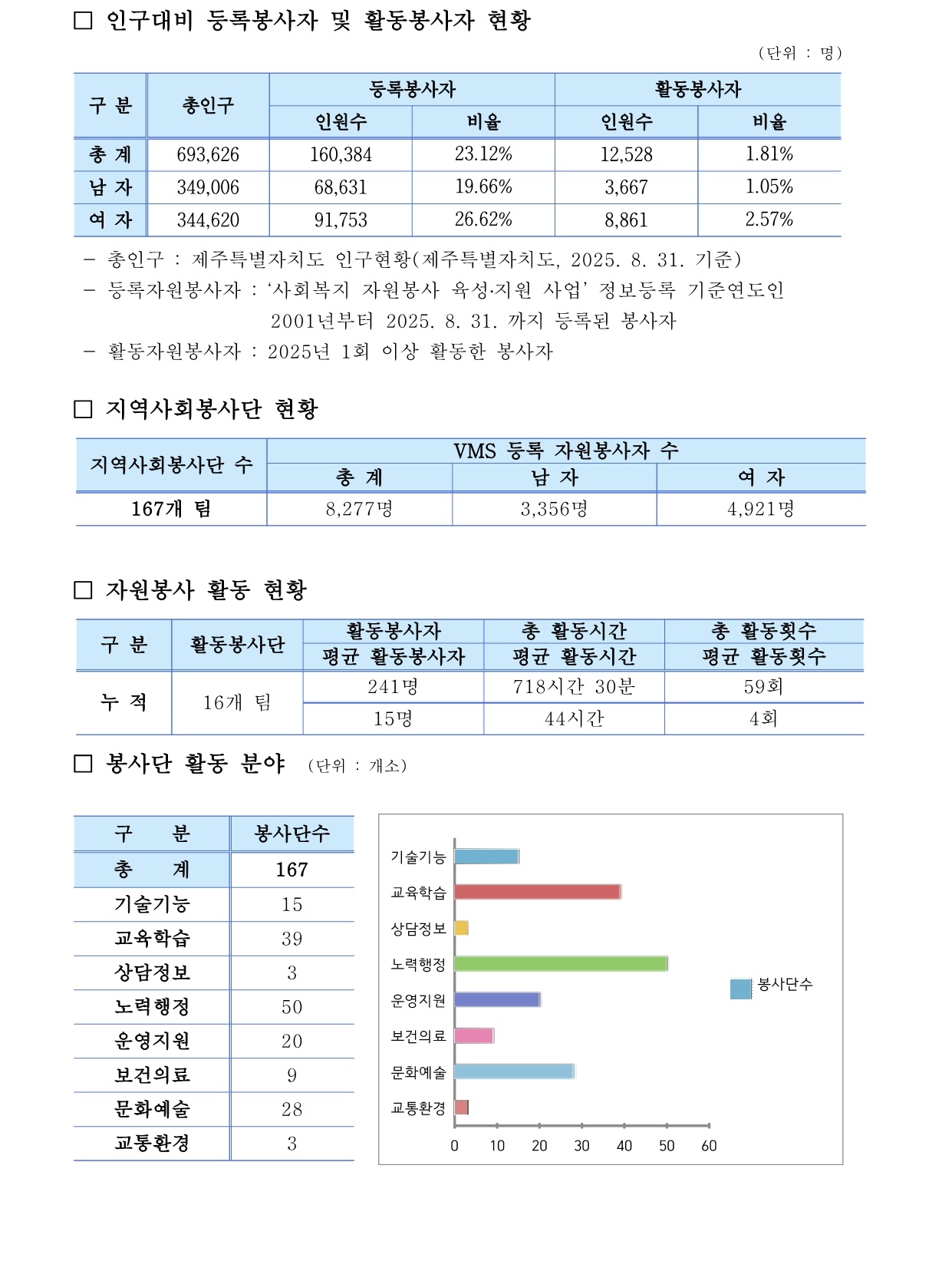 제주특별자치도 자원봉사현황 (2025. 8. 31. 기준)