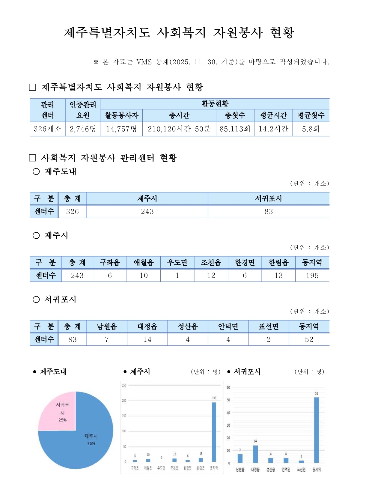 제주특별자치도 자원봉사 현황 (2025. 11. 30. 기준)