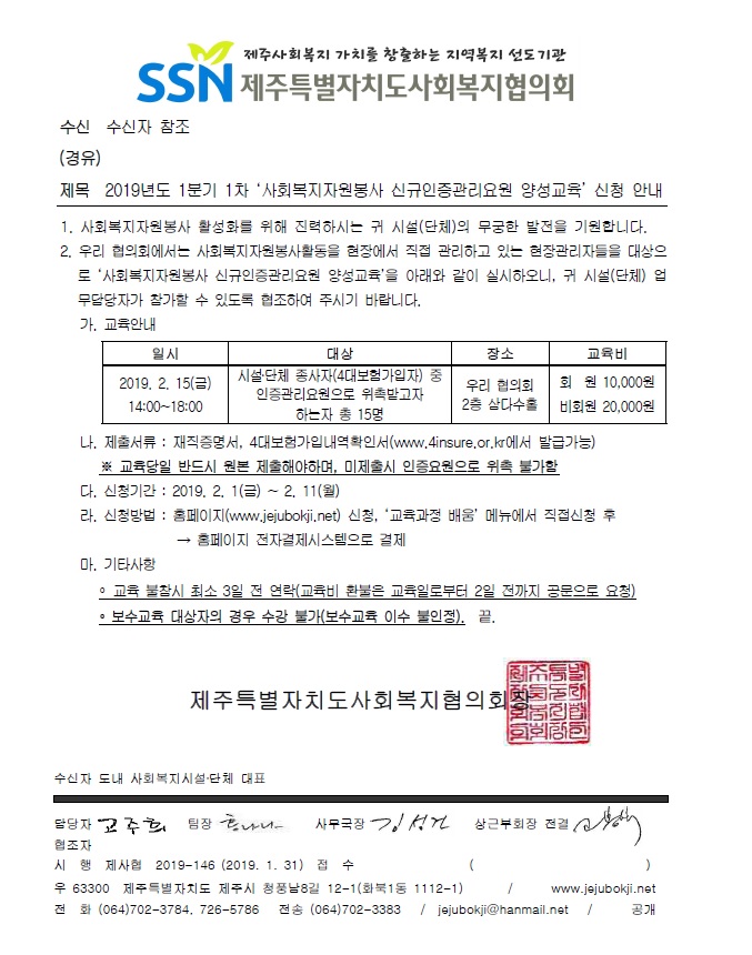 | 교육장소 | 제주협의회 2층 삼다수홀 |
