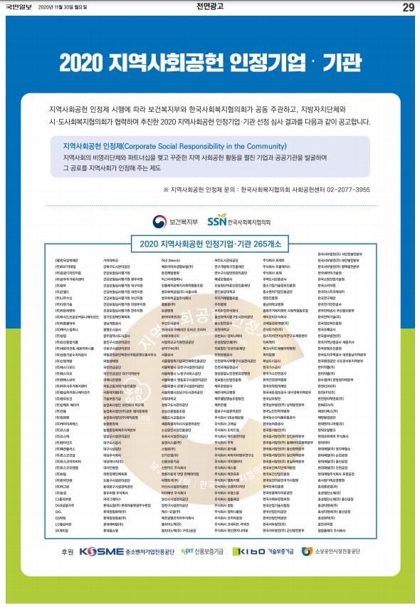 기타 2020년 '지역사회공헌 인정의 날' 행사 영상 및 인정기업·기관 안내