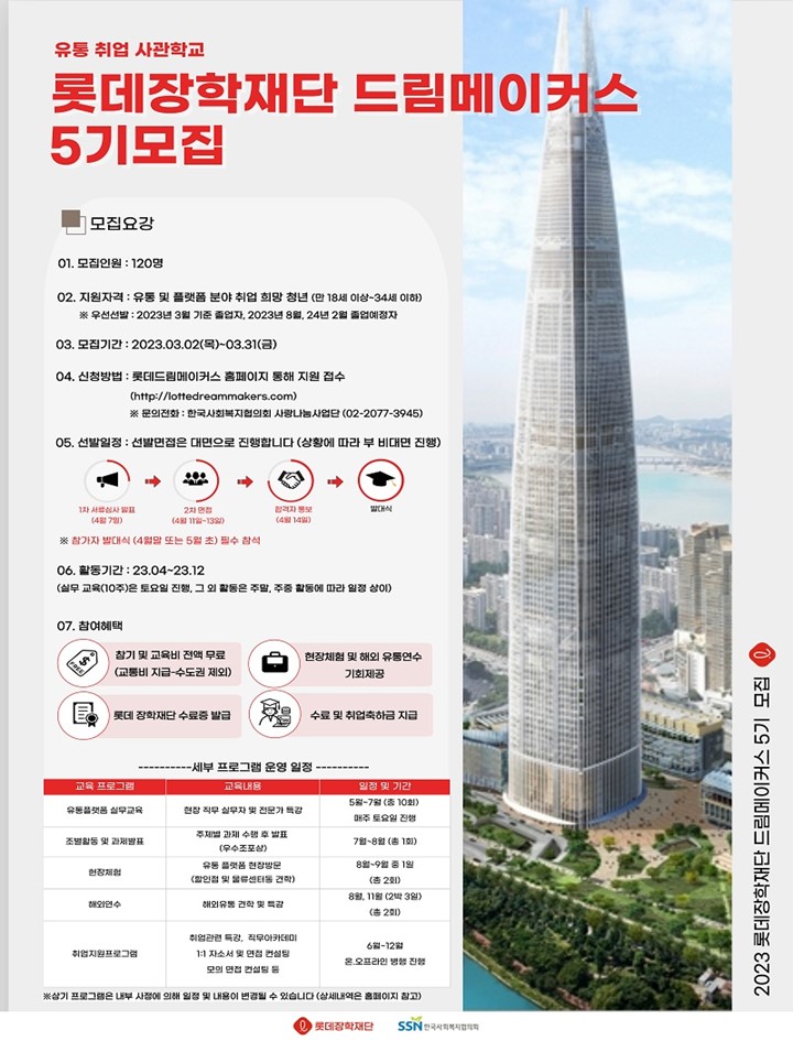 사회공헌공모 [롯데장학재단/한국사회복지협의회] 취약계층 청년 취업지원 프로그램 ‘드림메이커스 5기’ 모집 안내(~3/31)