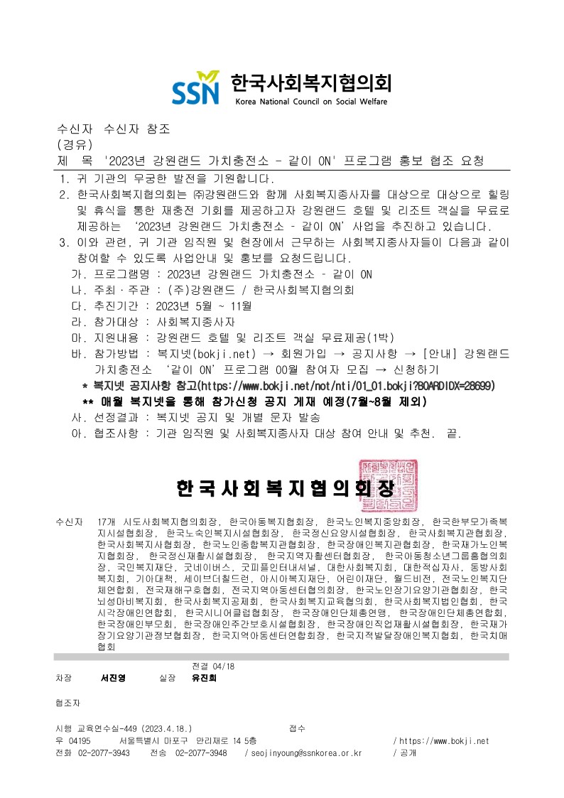 ○ 문의전화 : 02-2077-3928(한국사회복지협의회) / 033-590-5988(강원랜드)
